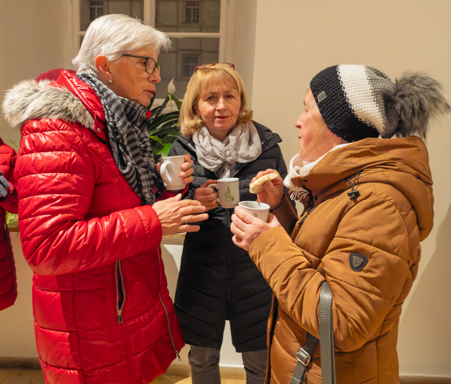 Im Anschluss an den Gottesdienst gab es noch ein gemütliches Beisammensein bei wärmenden Getränken. Damit konnte diese intensive Woche noch mit Begegnungen ausklingen.