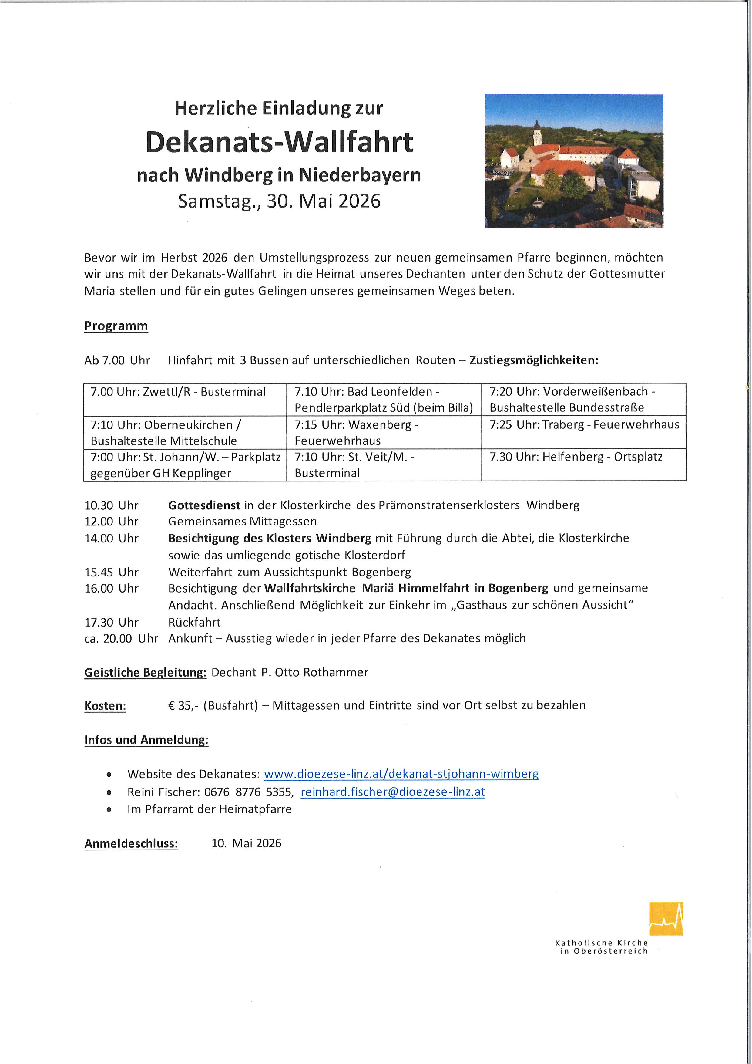 Dekanats-Wallfahrt nach Windberg am 30. Mai 2026