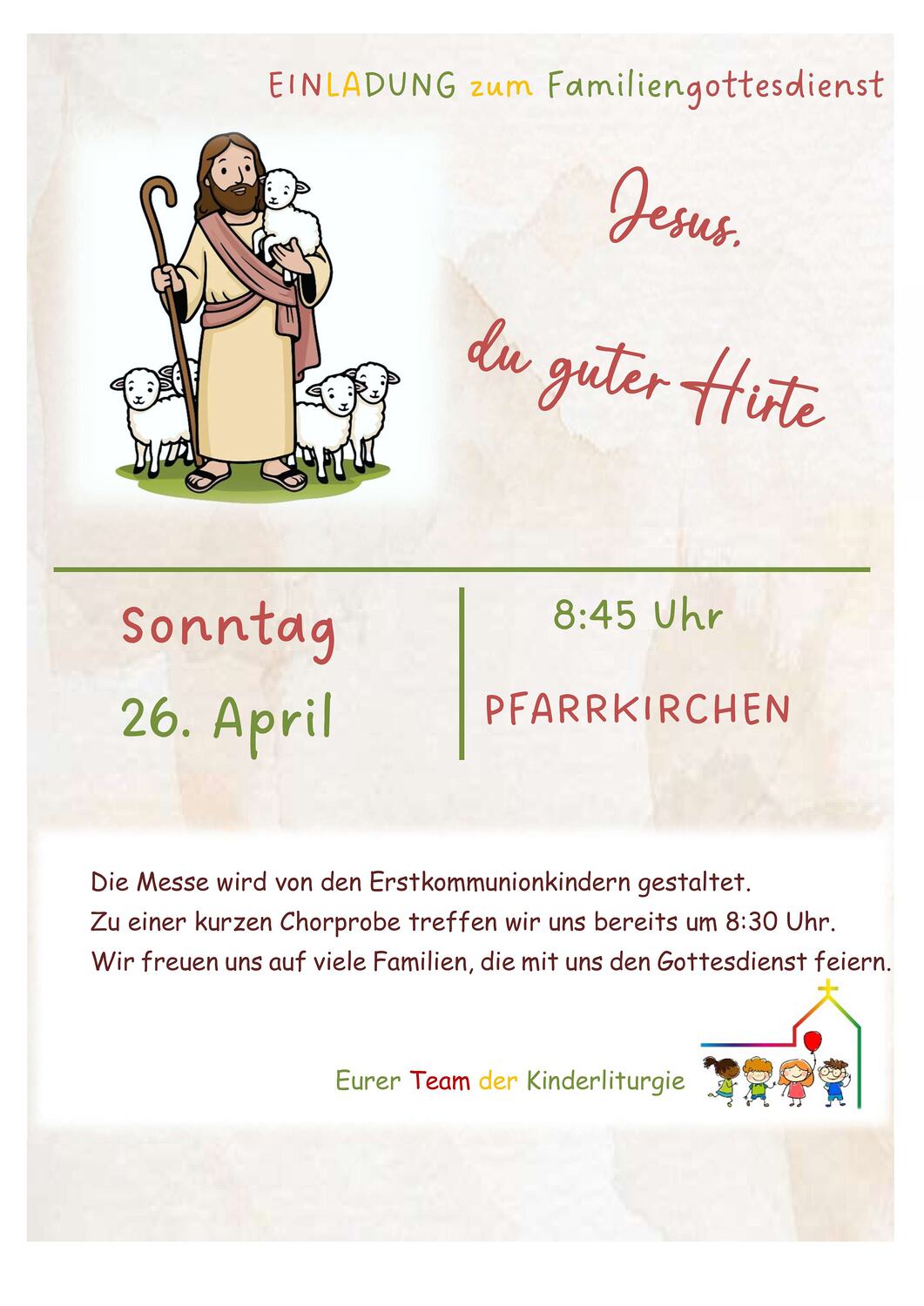 Der Liturgiearbeitskreis des PGR plant folgende Familien-Gottesdienste: