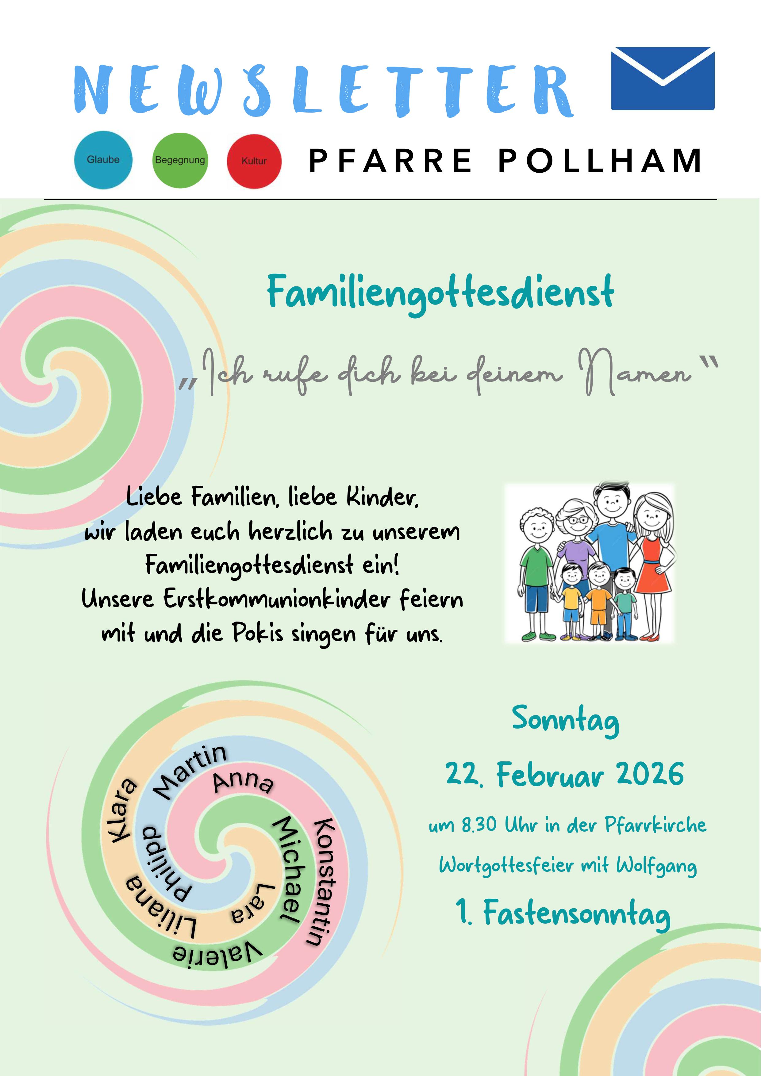 Möchten Sie unseren Pfarr-Newsletter erhalten? Tragen Sie einfach Ihre E-Mail-Adresse ein und bleiben Sie über aktuelle Termine, Gottesdienste und Neuigkeiten aus unserer Pfarre informiert.