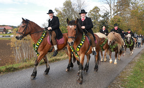 Wallfahrt auf dem Rücken der Pferde und zu Fuß: Am 5. November 2023 fand in Pettenbach der traditionelle Leonhardiritt. Ca. 80 Pferde und ihre Reiter:innen beteiligten sich am Ritt von der Pfarrkirche Pettenbach zur Wallfahrtskirche Heiligenleithen.