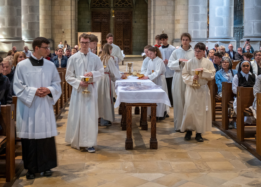 Am Mittwoch, 16. April 2025 weihte Bischof Manfred Scheuer im Linzer Mariendom die heiligen Öle für die Diözese Linz. Den Gottesdienst feierten heuer knapp 100 jugendliche Ministrant:innen („Maxi-Minis“) aus ganz Oberösterreich mit, die sich derzeit auf ihre Firmung vorbereiten.