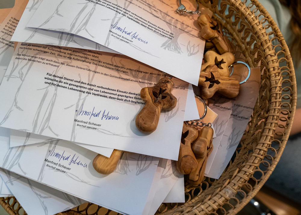 Die 100 jugendlichen Ministrant:innen erlebten nicht nur die Chrisammesse, sondern beim „Maxi-Mini-Tag“ auch ein vielseitiges Rahmenprogramm, das von Mitgliedern des diözesanen Ministrant:innen-Arbeitskreises organisiert worden war. Programmpunkte waren die Zubereitung der Öle, eine Führung durch den Linzer Mariendom und ein Kennenlernen mit Bischof Manfred Scheuer.