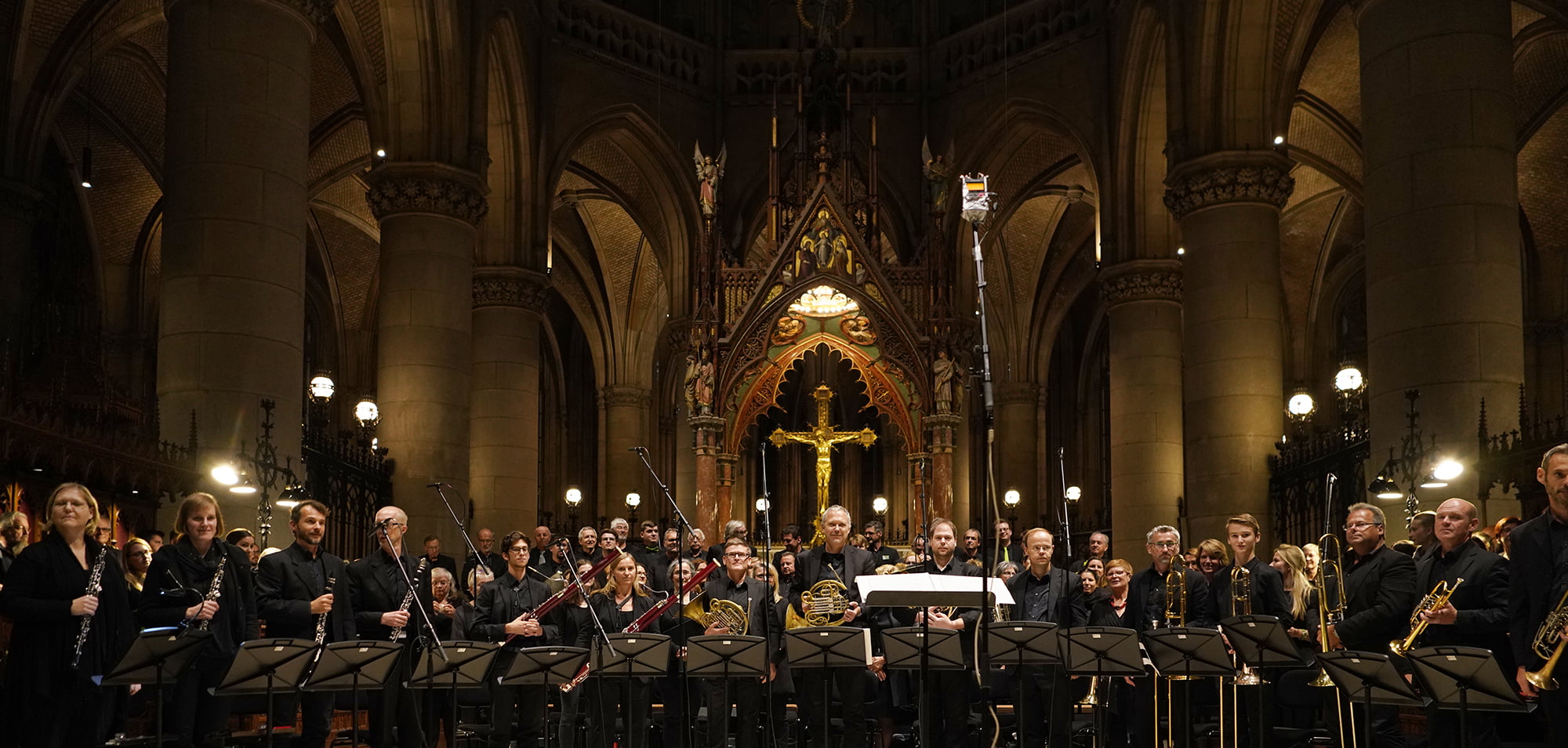 Foto 4: Es musizierten der Domchor Linz, der Hard-Chor Linz (Leitung: Alexander Koller) und ein Bläserensemble der Linzer Dommusik unter der Gesamtleitung von Domkapellmeister Josef Habringer. © Brucknerhaus Linz / Reinhard Winkler