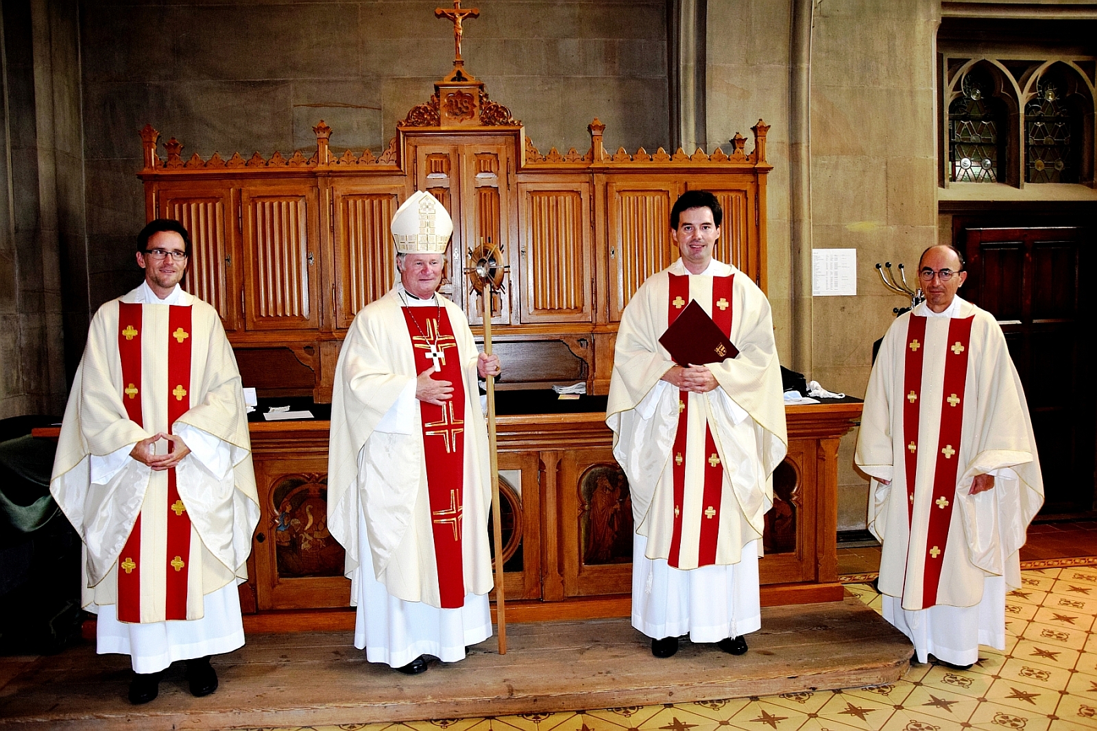 Während der Heiligenlitanei, in der die Heiligen von der Gottesdienstgemeinde als Fürsprecher und Helfer angerufen wurden, lag der Weihekandidat ausgestreckt auf dem Boden der Altarinsel – als Zeichen der Hingabe, Bereitschaft und Demut vor Gott.