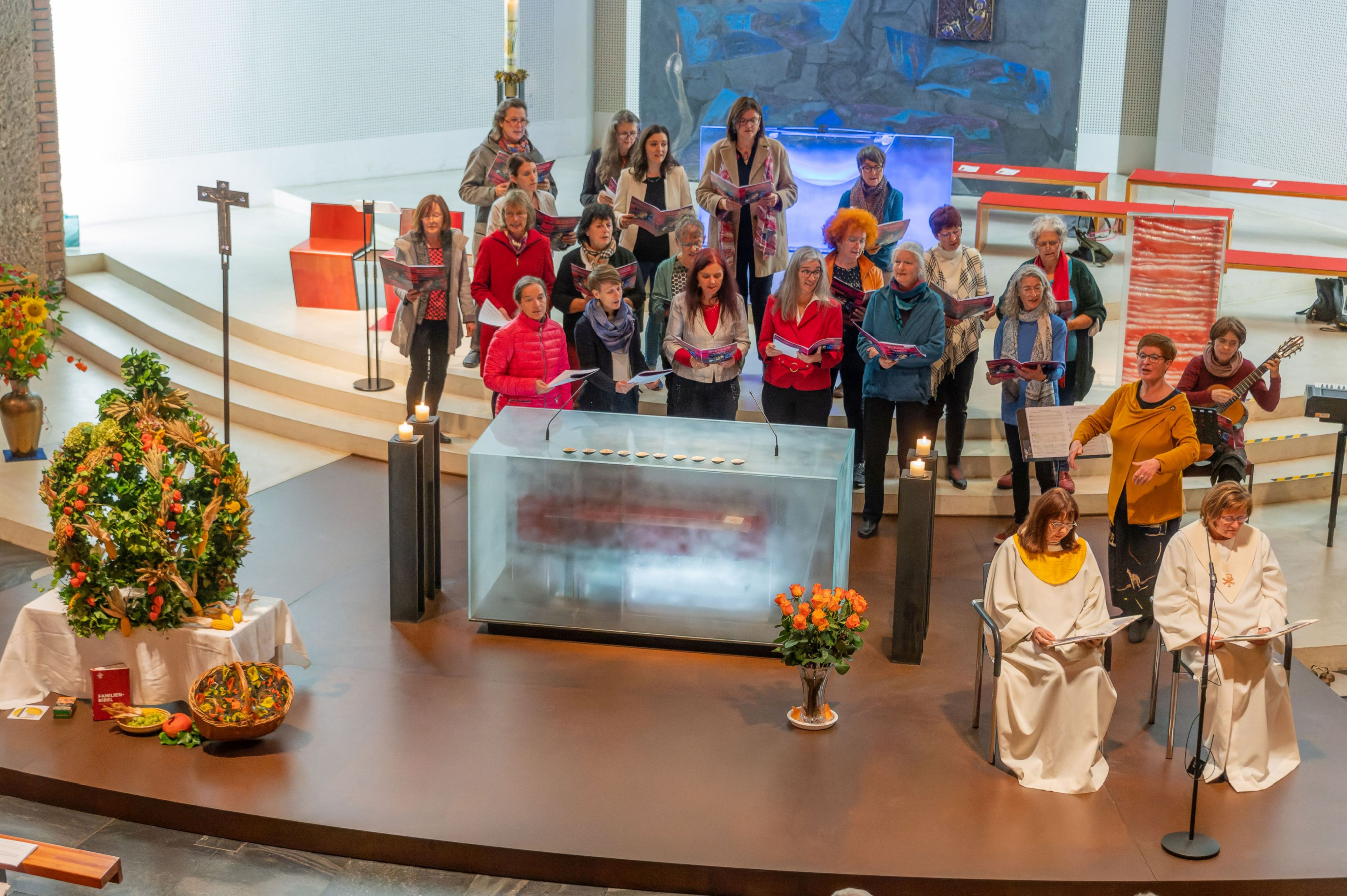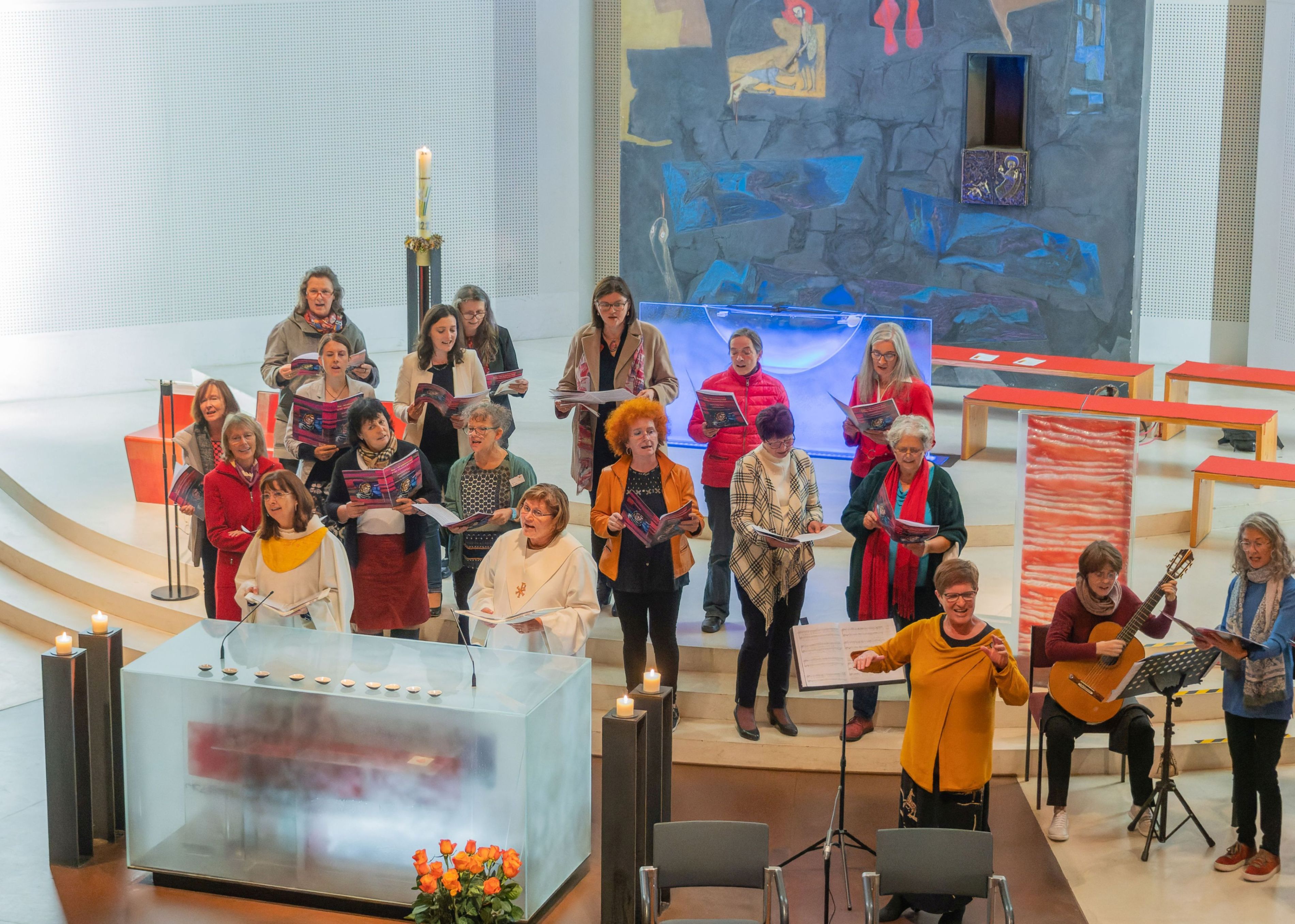 Foto 1 und Foto 2: Frauenliturgie mit Doris Wierzbicki und Adelheid Schrattenecker, musikalisch gestaltet durch einen Frauenchor und Instrumentalist:innen unter der Leitung von Johanna Strasser-Lötsch.
