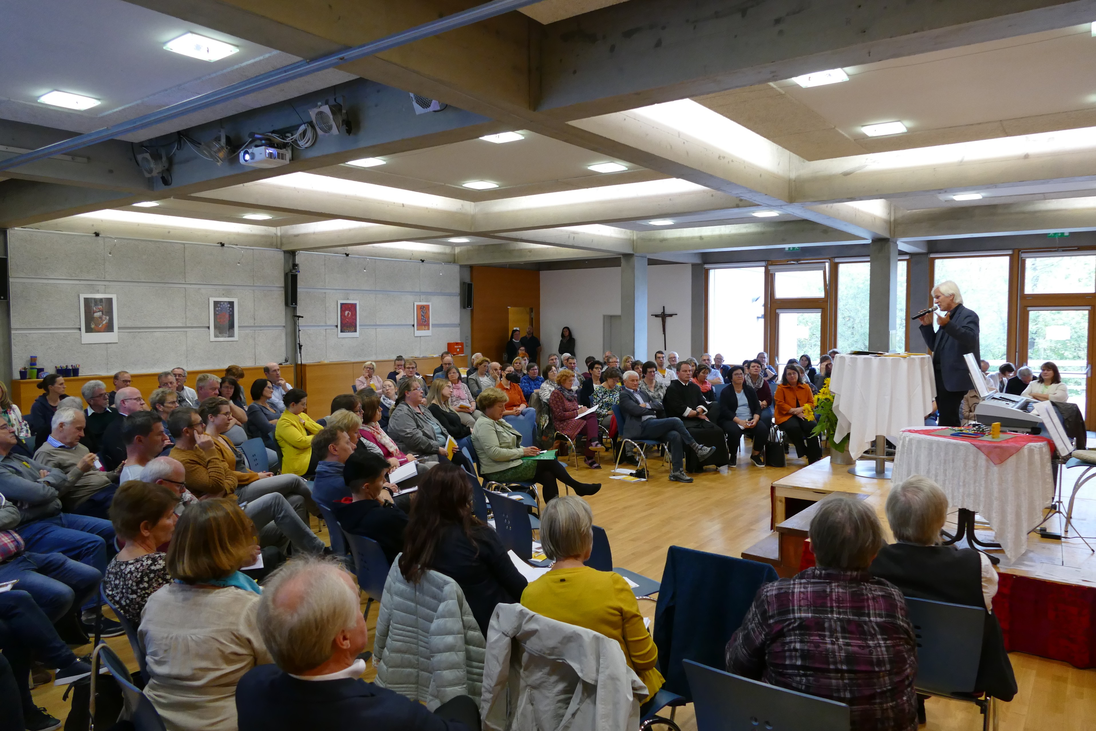 Foto 8: Lebendiger Austausch bei der Startveranstaltung im Pfarrsaal der Pfarre Riedberg