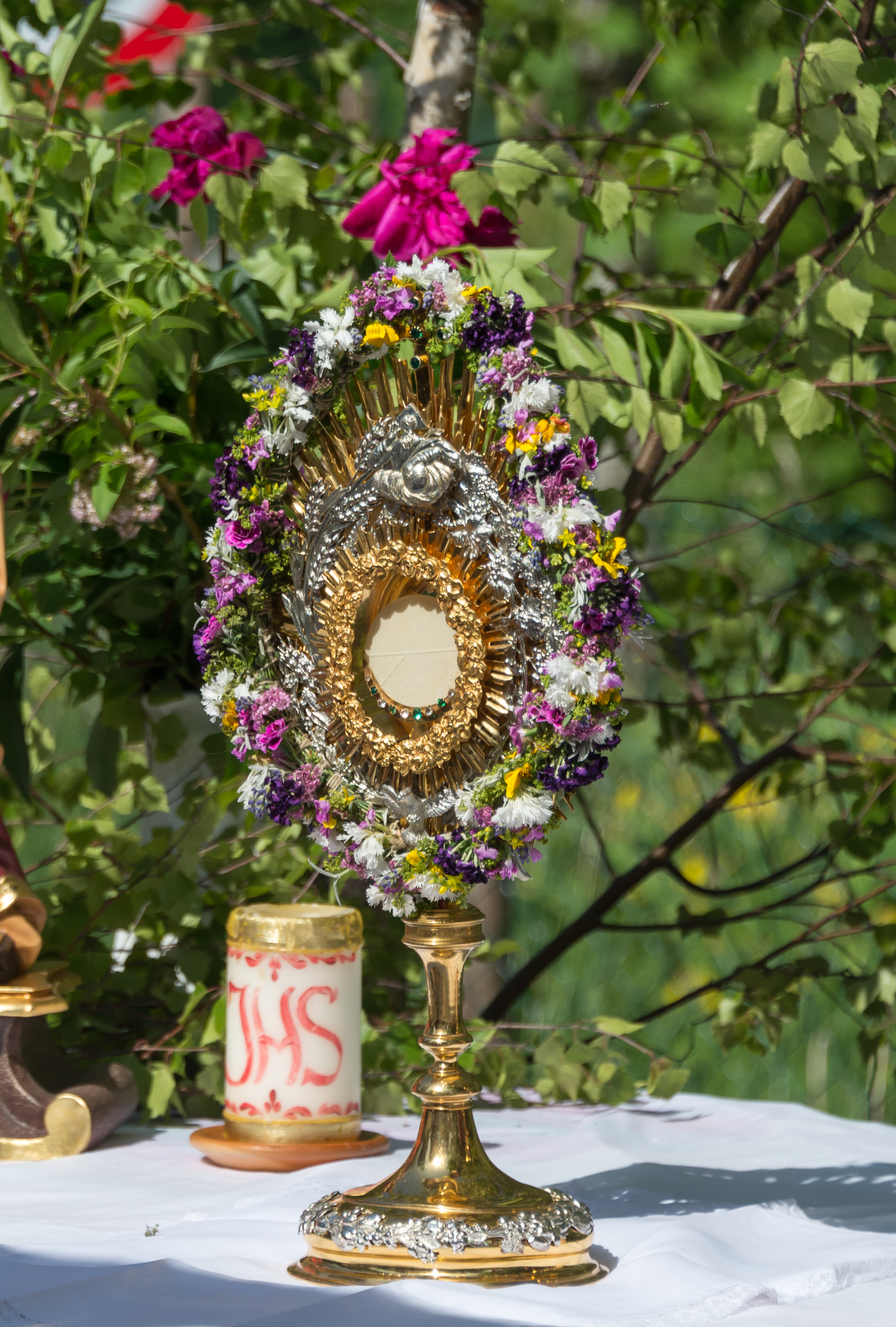 Warst du schon mal bei einer Fronleichnamsprozession dabei? Da gibt es einen „Himmel“, der getragen wird, Kinder streuen Blumen, Birken schmücken die Häuser und natürlich die Monstranz mit dem Heiligen Brot. Aber was genau feiern wir da?