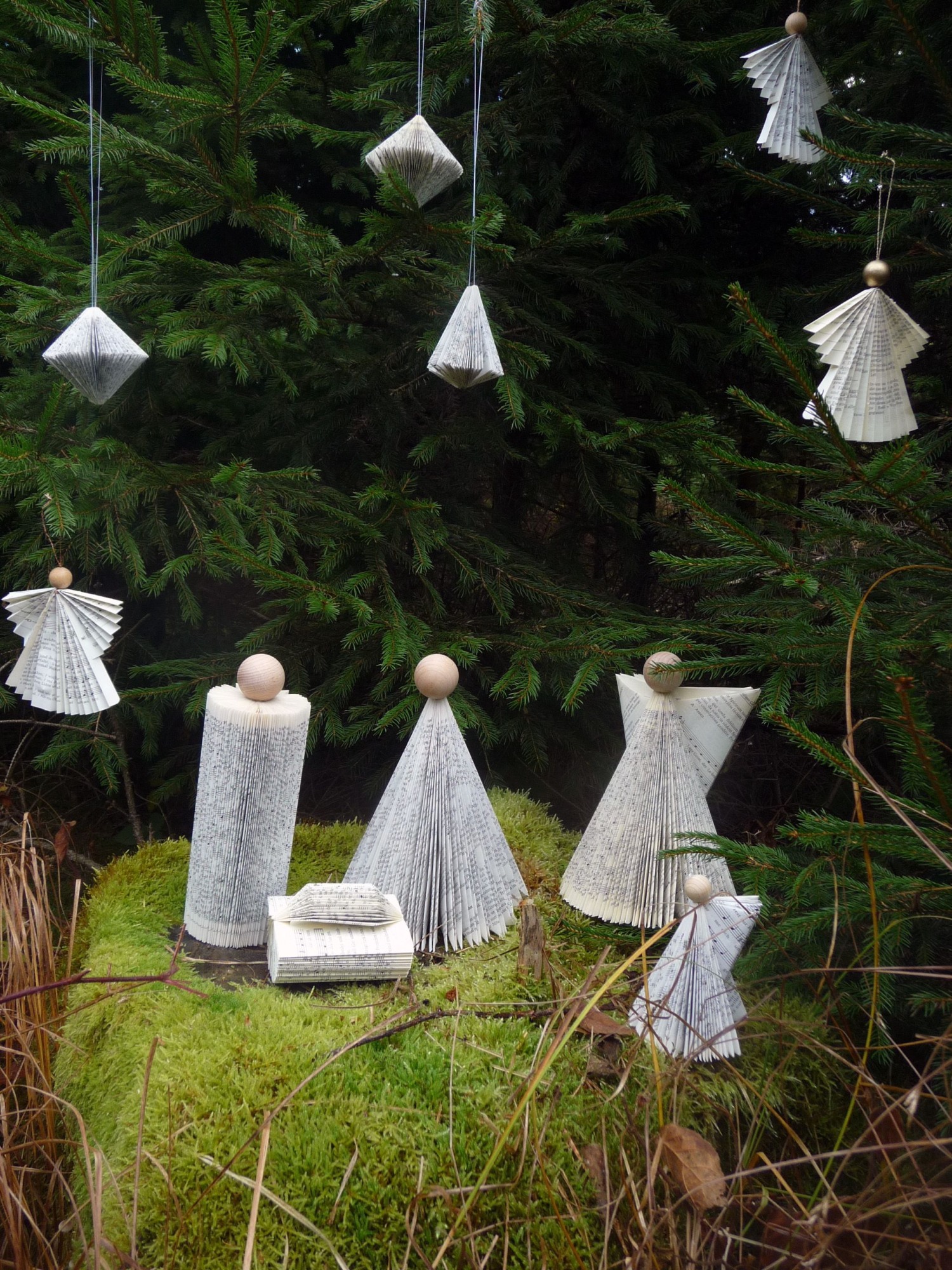 Foto 1 & Foto 2: Handgefertigte Weihnachtsdekoration aus alten Gotteslob-Büchern © DomCenter
