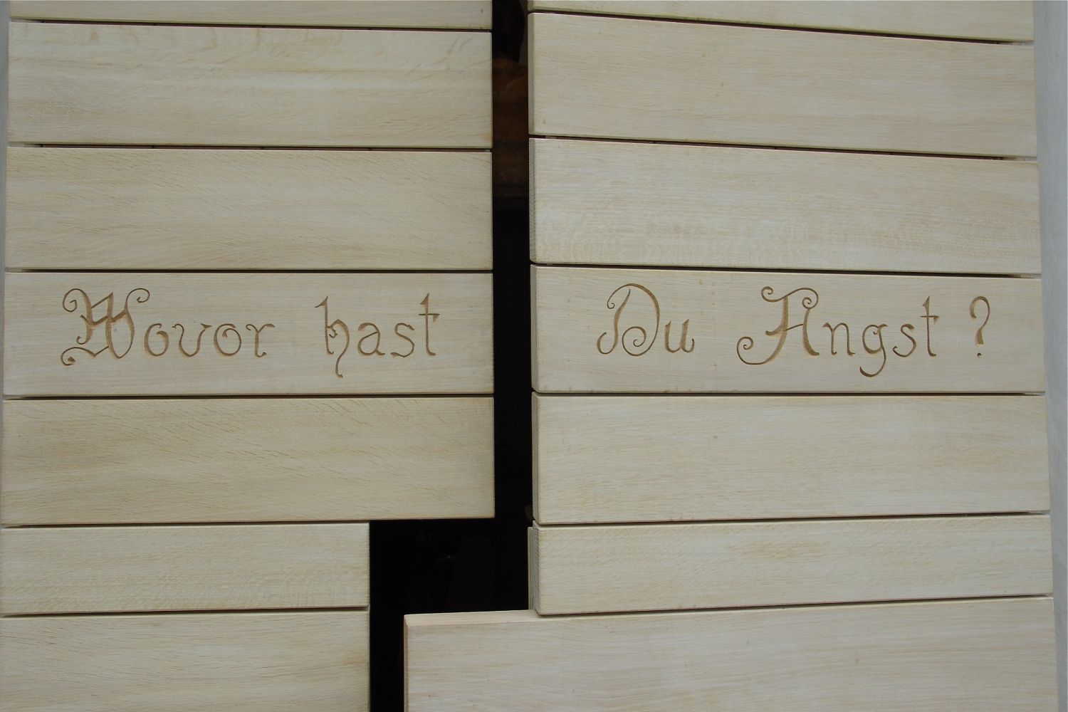 Die Tür ist wie ein Blatt Papier mit einer Frage. Der vertikale Spalt und der rechteckige offene Raum zwischen den Doppelflügeln beziehen sich in ihrer Form auf den Altar. Sie ist der Beginn der Raumerzählung, wie die Künstler sie verstehen.