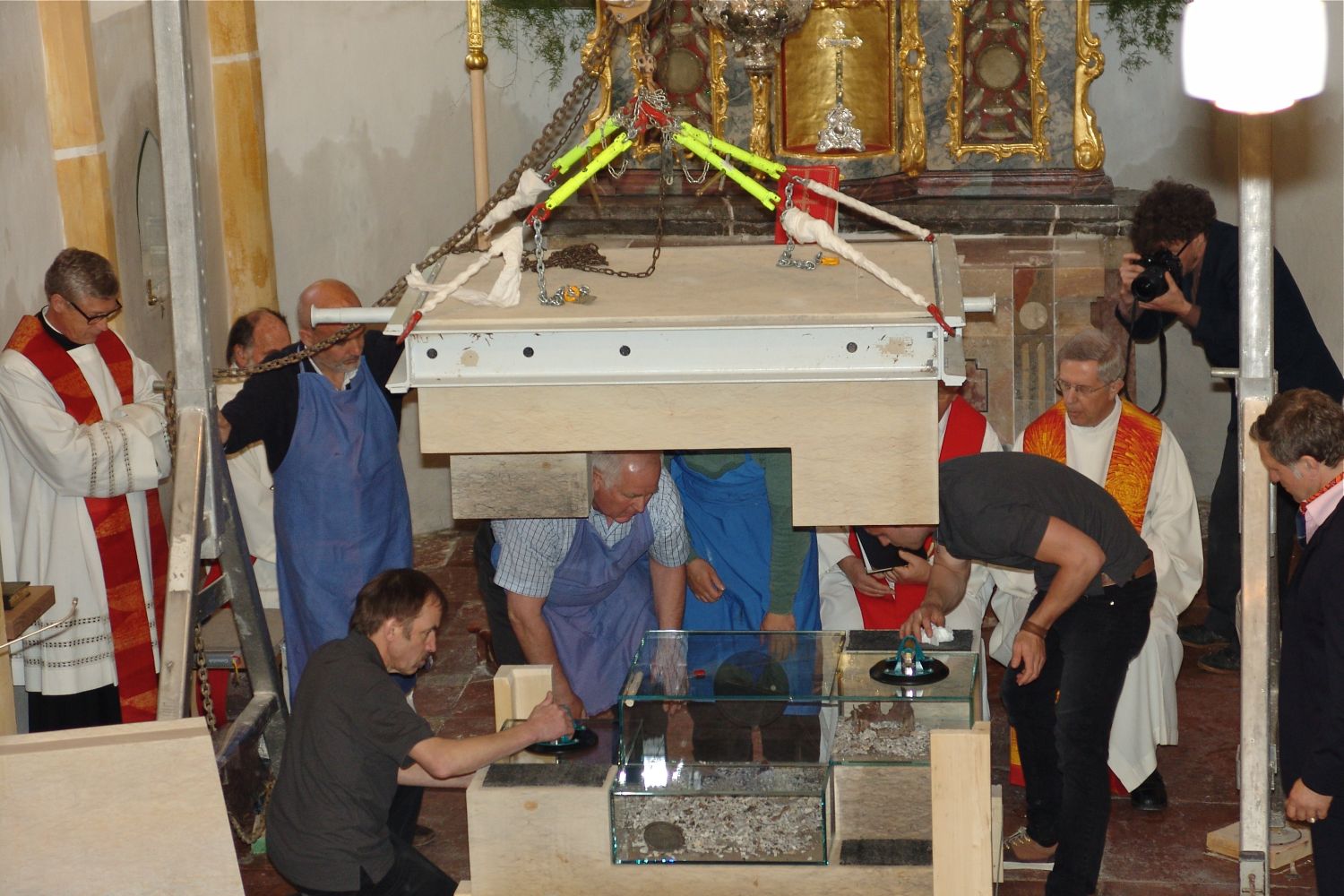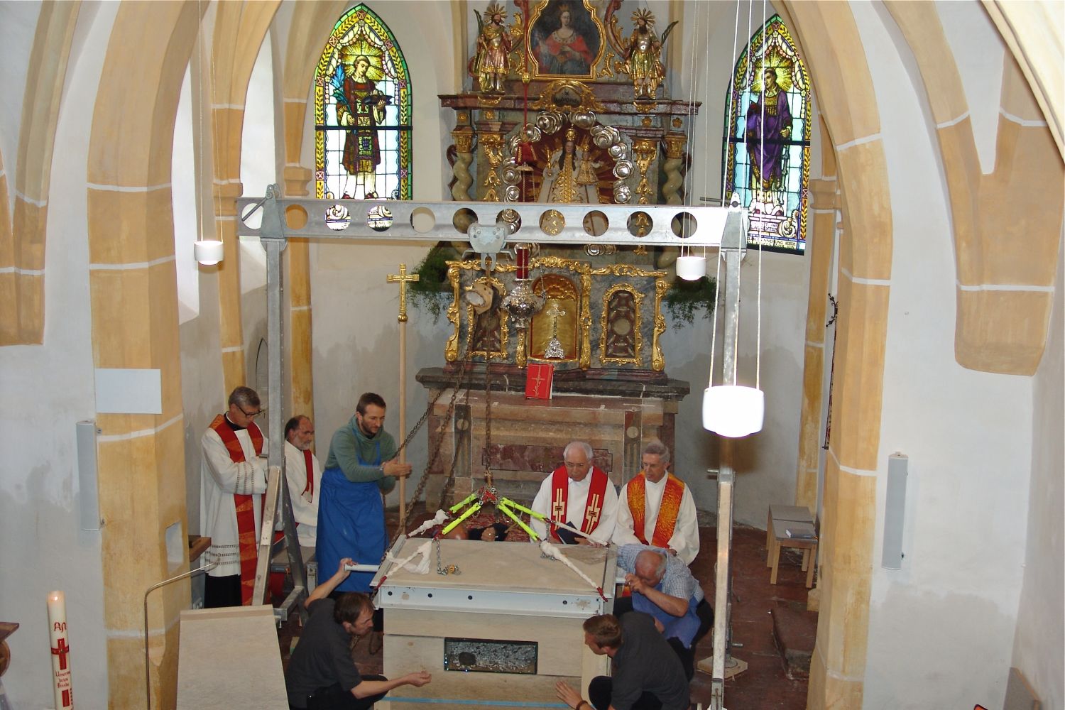Foto 7: Einbettung der Reliquien und Zusammenfügung des Altars