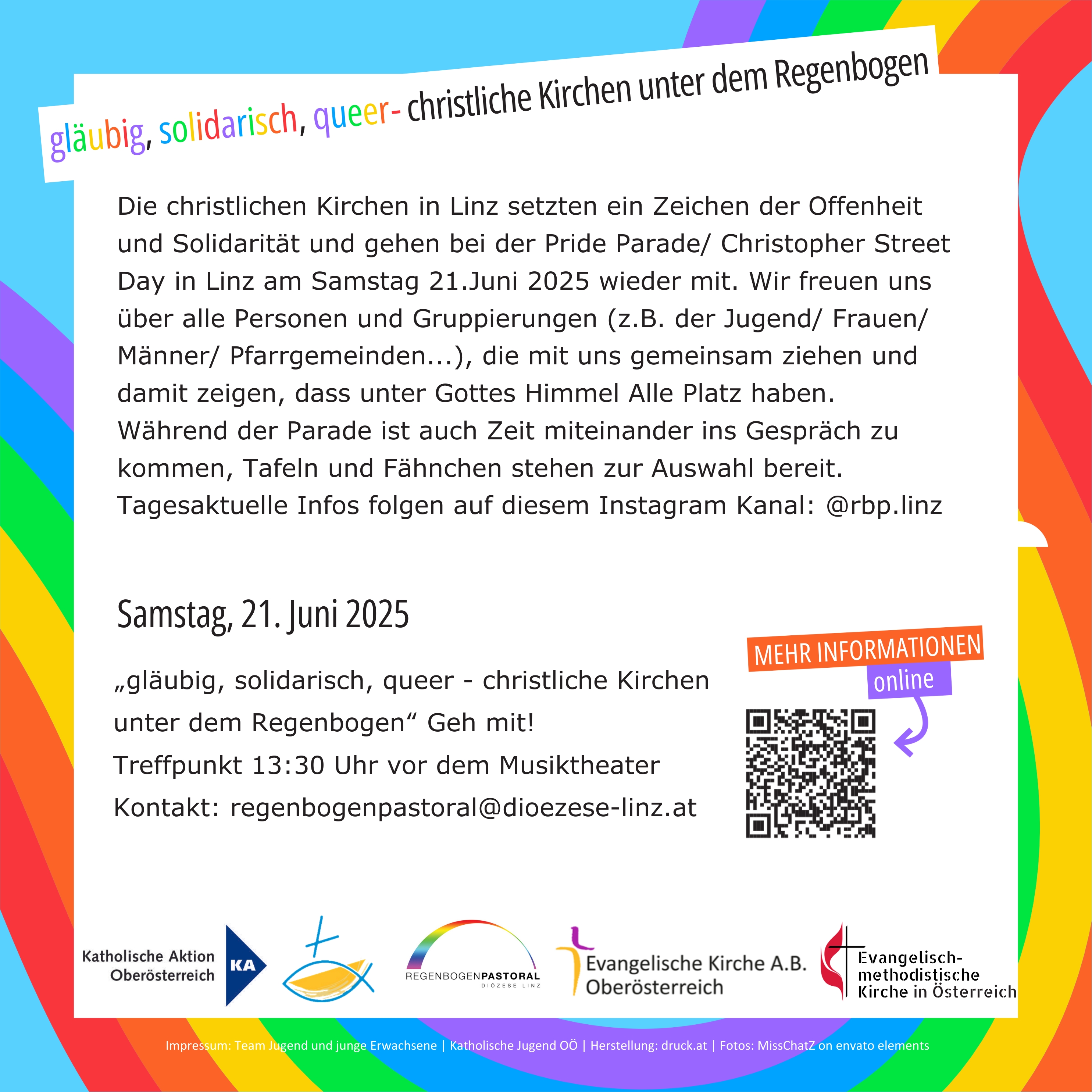 Unter dem Titel Zusammen auf*brechen kommen Menschen aus dem LGBTIQ-Spektrum zu Wort, um ihre Geschichten von Schmerz, aber auch Hoffnung im Kontext des österlichen Kreuzwegs zu erzählen. Am 9. April um 18:30 findet das ökumenische, multimediale und interaktive Event in der Jugendkirche Grüner Anker LINZ statt.