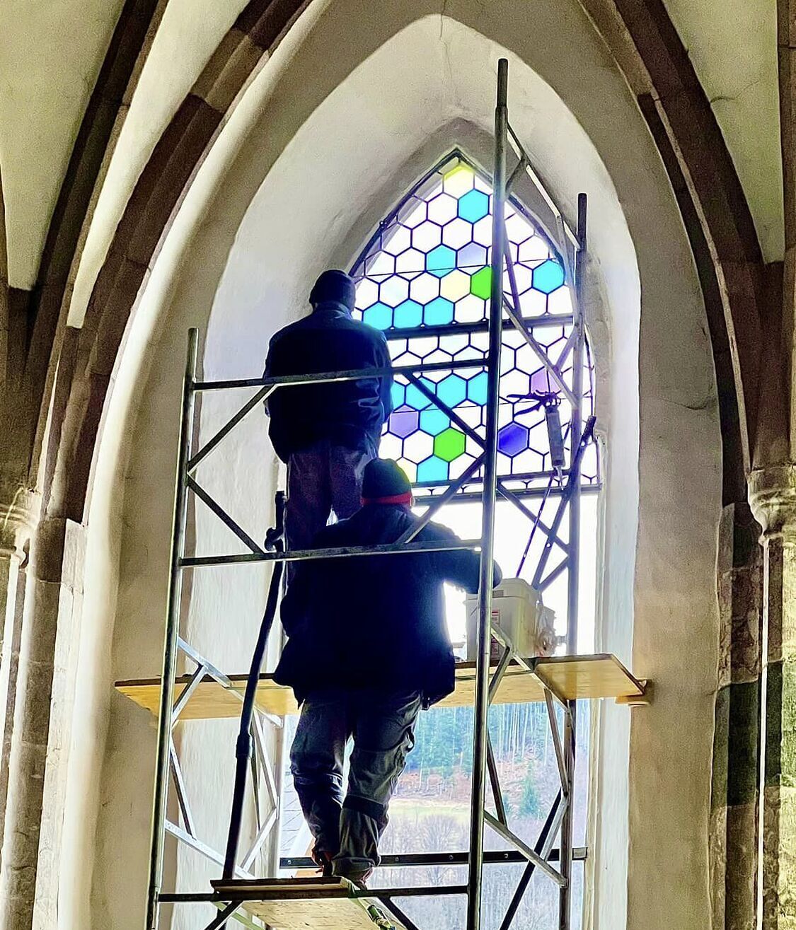 Bad Goisern. Kirchenfenstergestaltung von Elisabeth Plank