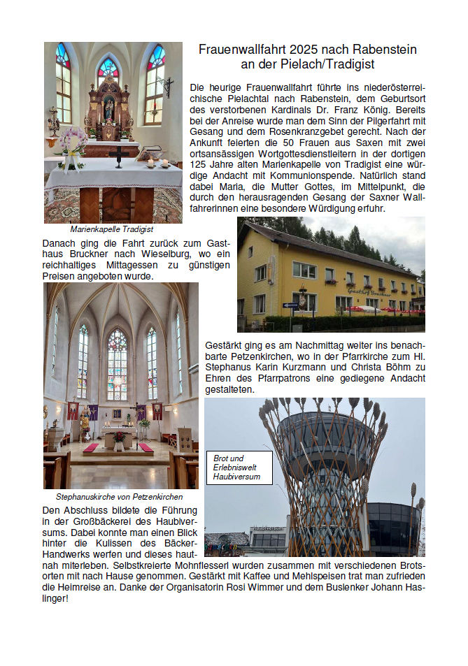 Frauenwallfahrt 2025 nach Rabenstein an der Pielach/Tradigist