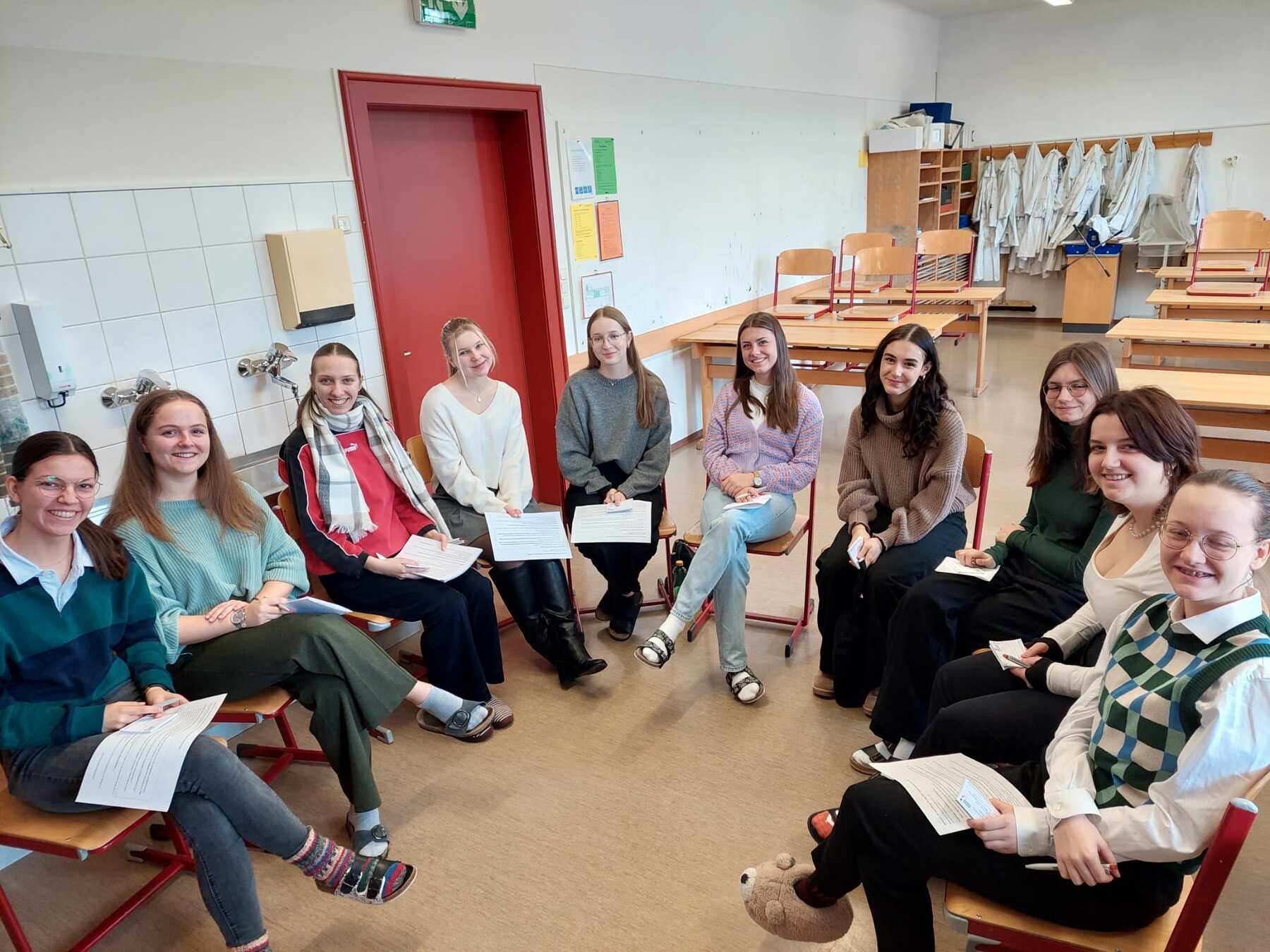 Ausgehend vom Fachimpuls, der von Dr. Bettina Brandstetter, einer ehemaligen Absolventin der Schule, gestaltet wurde, arbeiteten die Schüler klassenübergreifend in kleinen Teams und präsentierten zum Abschluss des Vormittags ihre Arbeiten, die vom klassischen Plakat über Podcast, Video oder poetischer Text reichten.