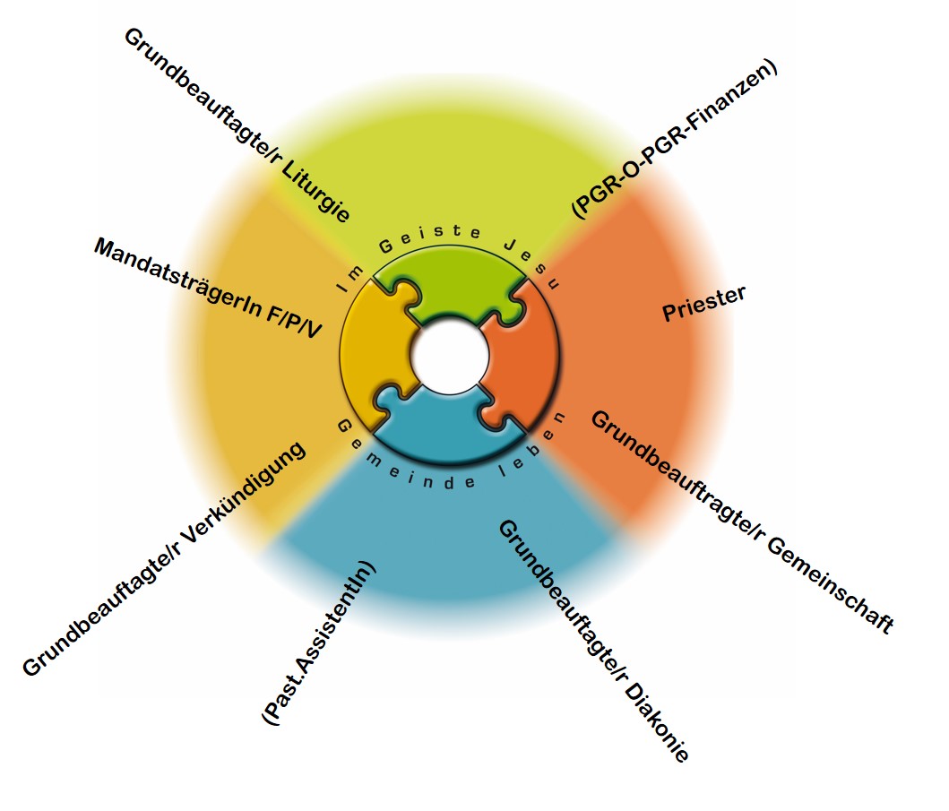 In der neuen Struktur der Pfarren und Pfarrgemeinden leiten Seelsorgeteams die Pfarrgemeinden. Sie tragen zusammen mit dem Pfarrgemeinderat und dem Pfarrlichen Pastoralrat dafür Sorge, dass Kirche für die Menschen am Ort erfahrbar und lebendig ist. Inhaltlich gründen die Seelsorgeteams auf den vier Grundfunktionen von Kirche. In ihrer Leitungsfunktion stehen sie im Dienst der Pfarrgemeinde und halten die Ausrichtung am Leben Jesu präsent.
