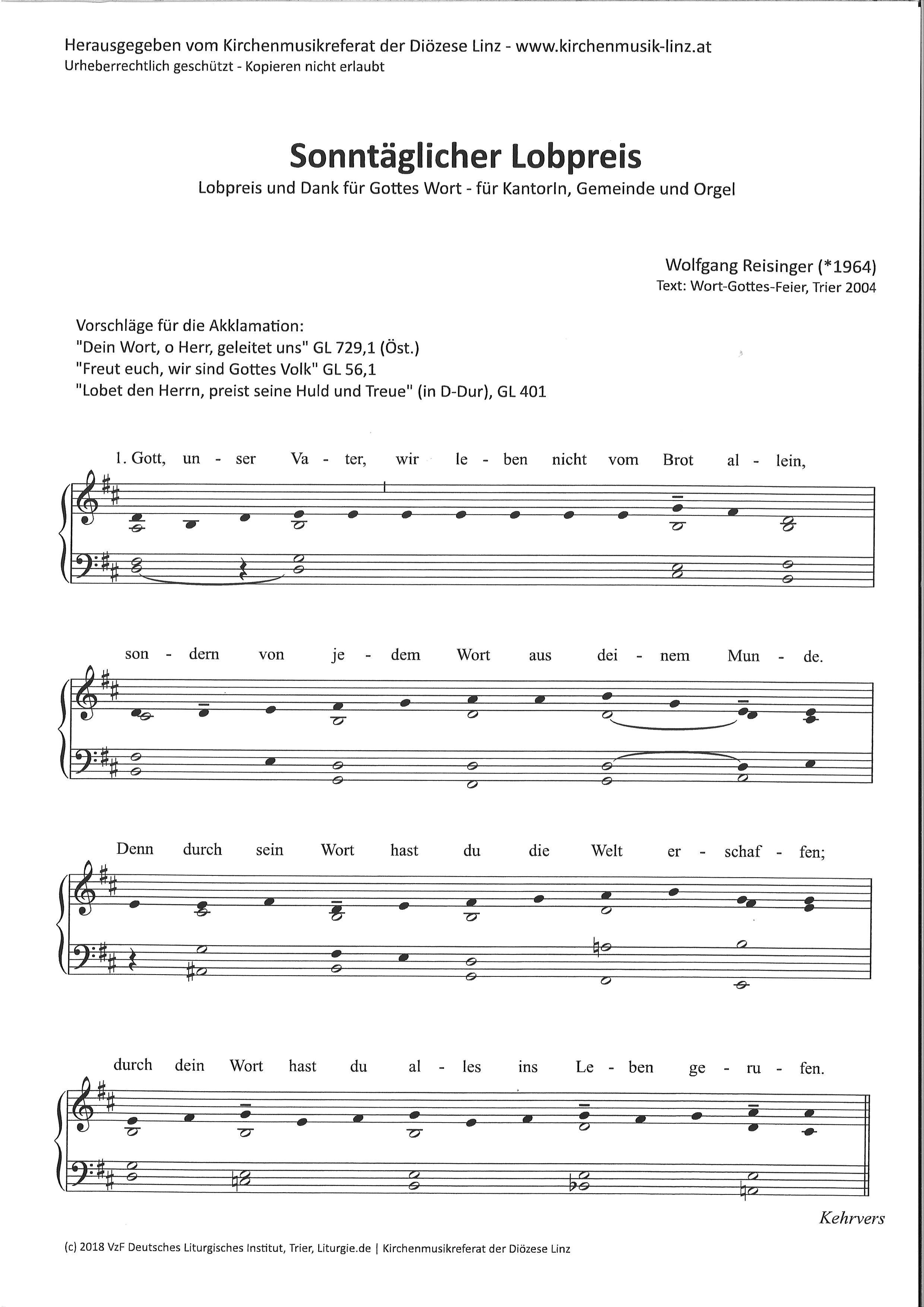 Lobpreis und Dank für Gottes Wort - für Kantor*in, Gemeinde und Orgel