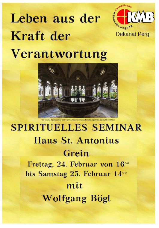 der Schwerpunkt liegt in der Auseinandersetzung mit der "Kraft der Veratnwortung", die wir als Männer haben. Begleitet wird das Wochenende von Mag. Wolfgang Bögl, dem theologischen Assistenten der KMB.