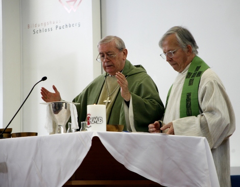 Bischof Ludwig und der geistliche Assistent der KMB, P. Markus Bucher beim Gottesdienst
