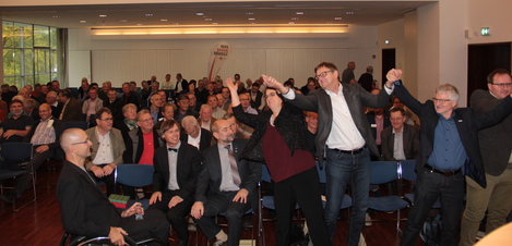 Dieser Satz / dieses Wort wurde in Einzelarbeit gefunden, und dann mit Worten von drei anderen Personen neu zusammengefügt sowie spontan in eine Bewegung transformiert. So verwandelte sich am Ende der ganze Saal in eine bunte Vielfalt an zusammenfassenden Bewegungen, bei denen sehr deutlich Themen und Anliegen sichtbar wurden wie gegenseitige Bestärkung / Unterstützung, gemeinsam Verantwortung übernehmen sowie Leben zu teilen.