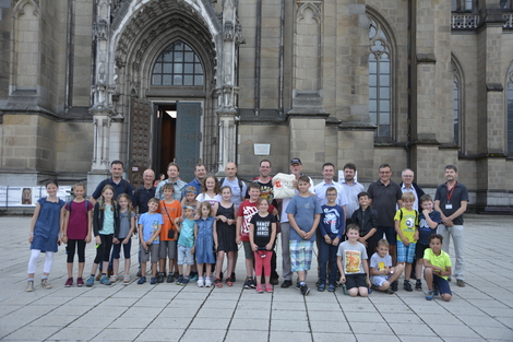In der Krypta bestaunten die Kinder den Sarkophag von Bischof Rudigier, bevor es über eine Wendeltreppe zur Hauptglocke, auf die Turmplattform in 65 m Höhe, ging. Ein überwältigender Rundblick über Linz entschädigte die TeilnehmerInnen für den mühsamen Aufstieg über 395 Stufen.