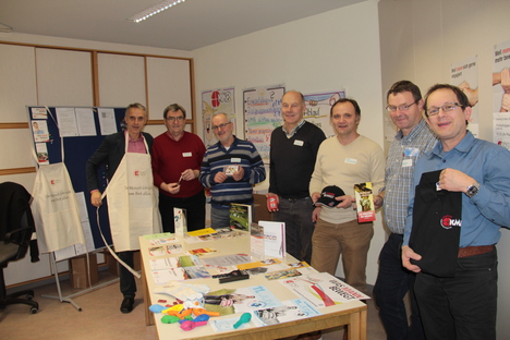 Fünf Männer haben sich zu diesem Workshop eingefunden, um Hintergründe zum Konzept der Perlen des Lebens kennen zu lernen und Impulse zu bekommen, wie man die Perlenkette konkret in der KMB-Arbeit einsetzen kann.