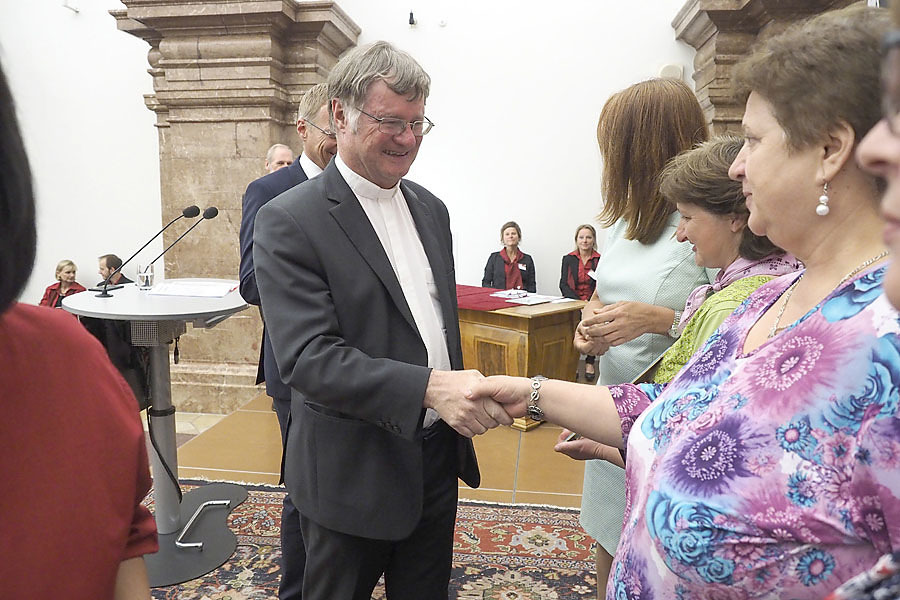 Bischof Manfred Scheuer ging auf die Bedeutung der Sprache ein. Er erinnerte daran, dass die Verbrechen gegen die Menschlichkeit vor 80 Jahren mit der Verachtung von Menschen begannen, die sich zuerst sprachlich ausdrückte. Solidarität bedeute, den Schwachen der Gesellschaft Achtung und Respekt entgegenzubringen. Eine solidarische Gesellschaft funktioniere nur, wenn es Beziehungen auf Basis von gegenseitigem Respekt gibt. Er gratulierte den Preisträgerinnen und Preisträgern. „Sie führen uns nachahmenswerte Beispiele vor Augen, wie man Anteil an der Benachteiligung von Menschen nimmt und sich nicht gegen die Not anderer immunisiert.“