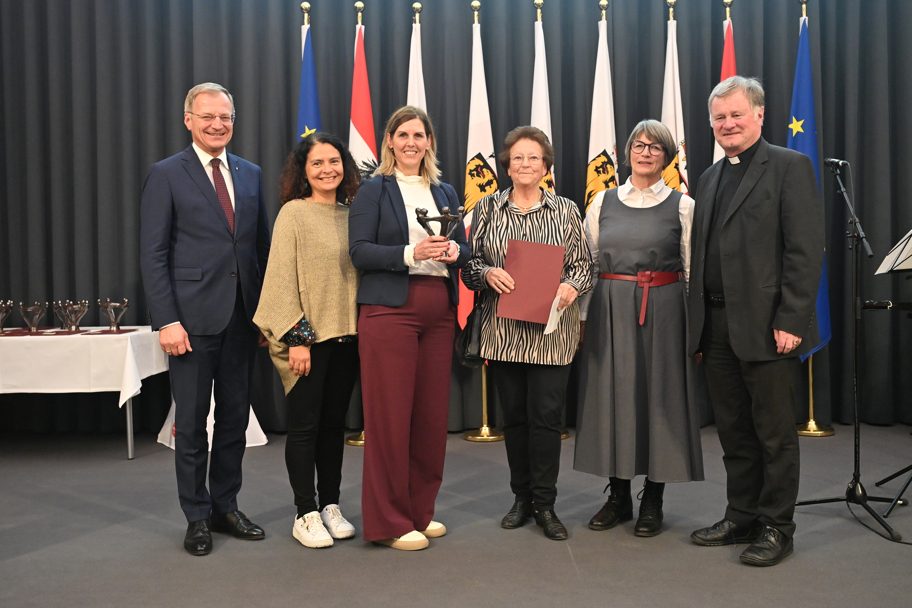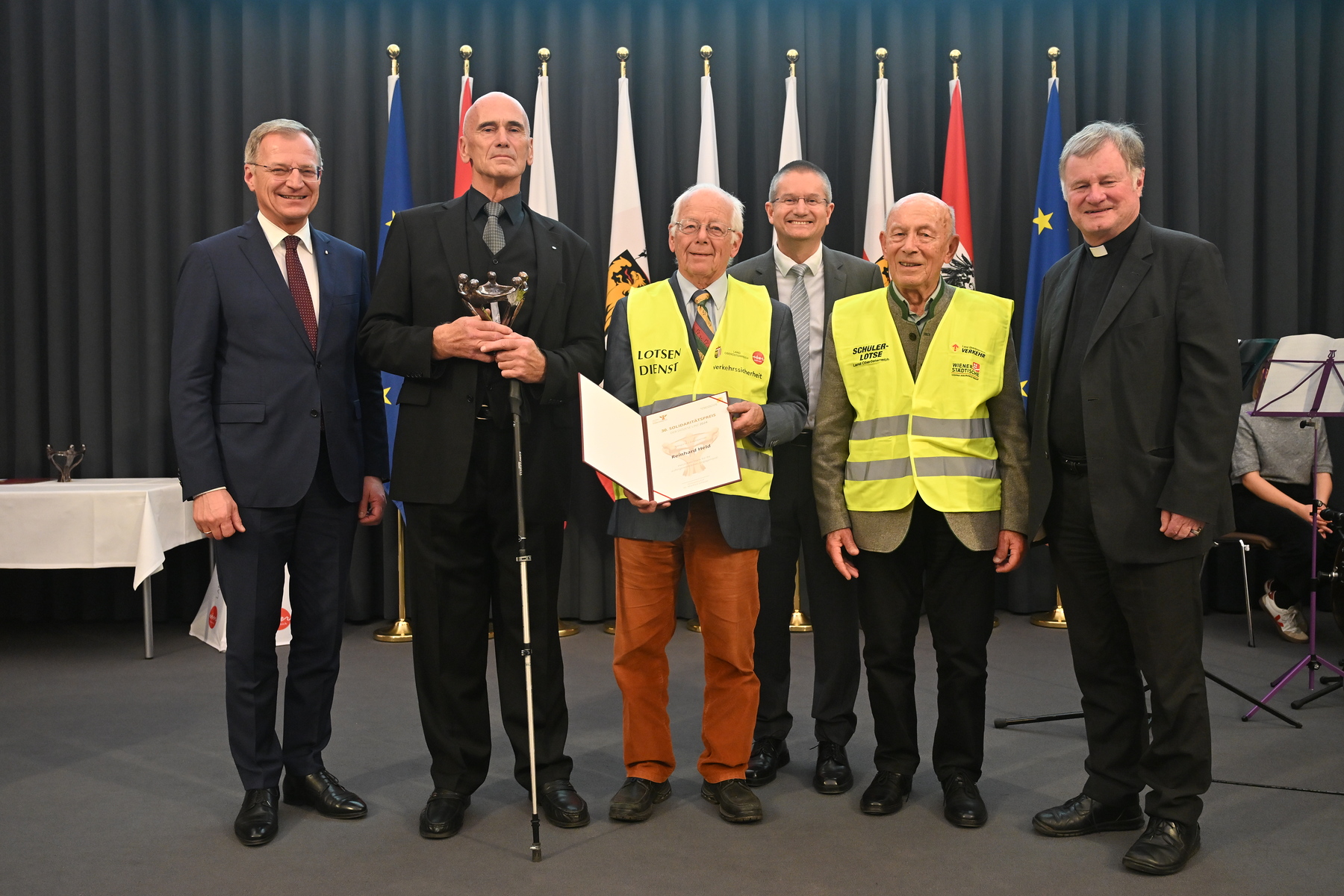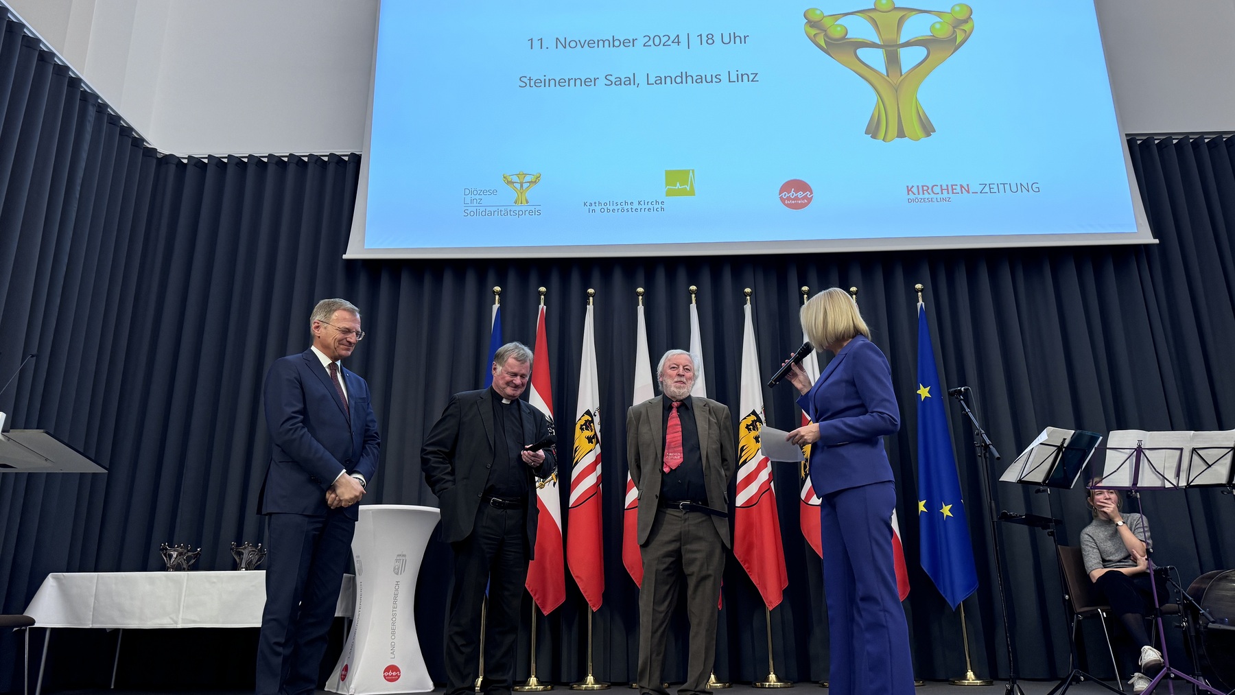 Sie engagieren sich für Menschen in finanziellen Notlagen, ausgegrenzte Gruppen, Menschen mit Beeinträchtigungen oder mit Fluchterfahrungen oder Kinder aus prekären Verhältnissen. Dafür wurden sie im Rahmen der Verleihungsfeier des Solidaritätspreises am 11. November 2024 von Bischof Dr. Manfred Scheuer, Landeshauptmann Mag. Thomas Stelzer und Soziallandesrat Dr. Christian Dörfel geehrt.