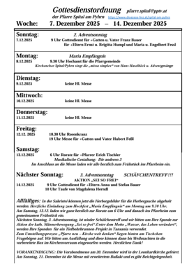 08:00 Uhr | Pfarrkirche Spital am Pyhrn, Spital am Pyhrn (4. Adventsonntag)