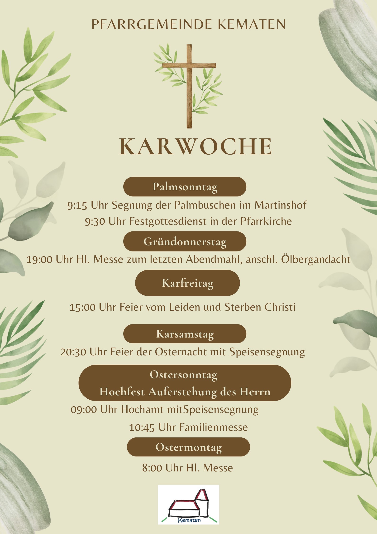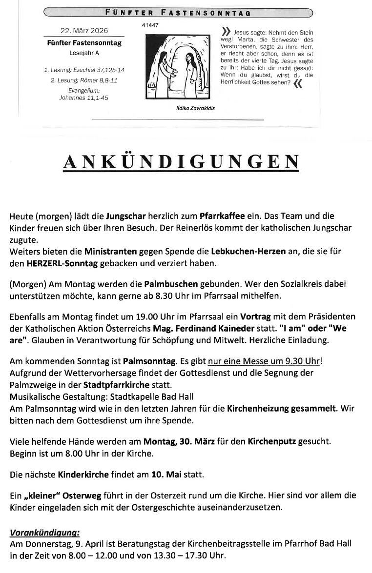 Wir laden Sie herzlich zur Mitfeier der Gottesdienste in ein unserer 16 Pfarrgemeinden am 29.03.2026 März ein.