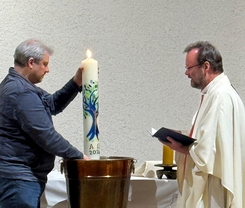 Eine Viertel Stunde vor Messbeginn versammelten sich die Gottesdienstbesucher – zu den ruhigen Klängen von MELoedtIE – am Pfarrplatz gemeinsam am Osterfeuer.