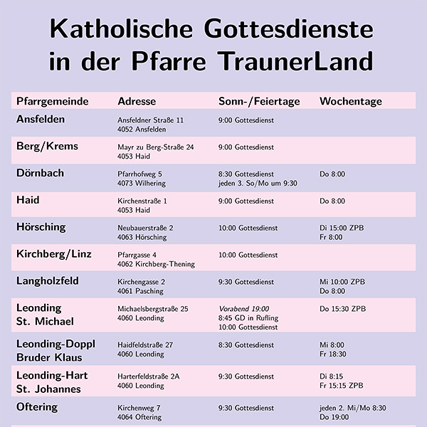 19.00 bis 20.30 Uhr im Pfarrzentrum Leonding-Hart St. Johannes