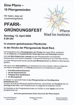 Pfarrgründungsfest Pfarre Ried am 12.April 2026