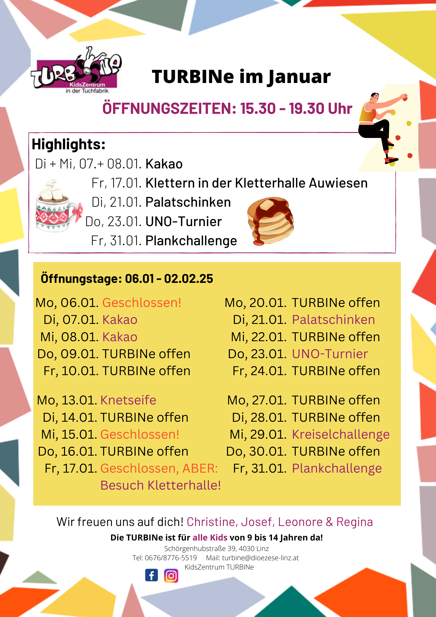 Die TURBINe hat einen offenen Betrieb zu fixen Öffnungszeiten. Während dieser Zeit können Kinder und Jugendliche ab 9 Jahren bis zum 14. Geburtstag, jederzeit kommen und gehen wann sie wollen.