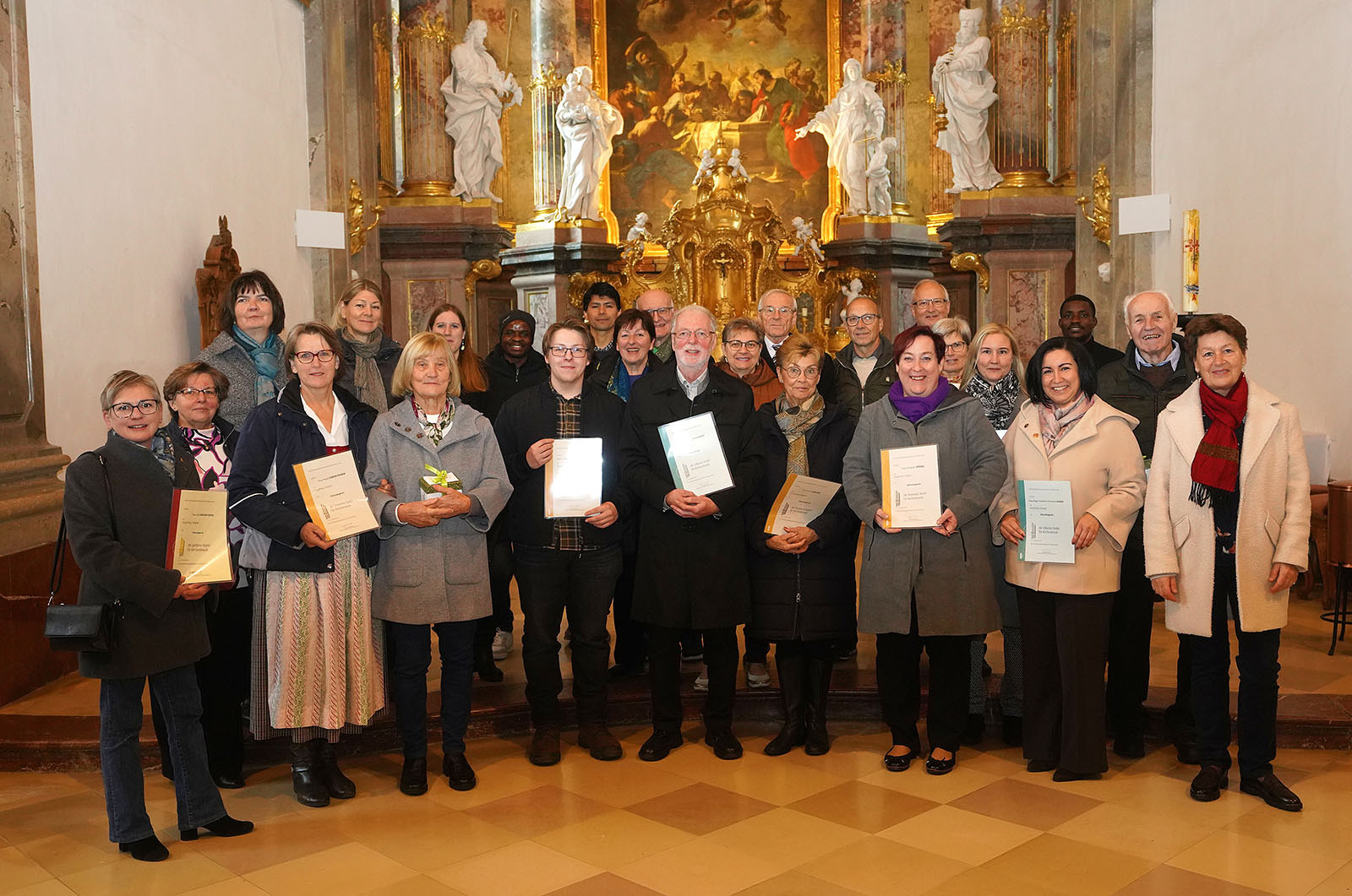 Am Sonntag, dem 16. November 2025 wurden nach einer eindrucksvollen Cäcilienmesse von unserem Pfarrer Pater Johannes langjährige Sängerinnen und Sänger unseres Kirchenchores geehrt.